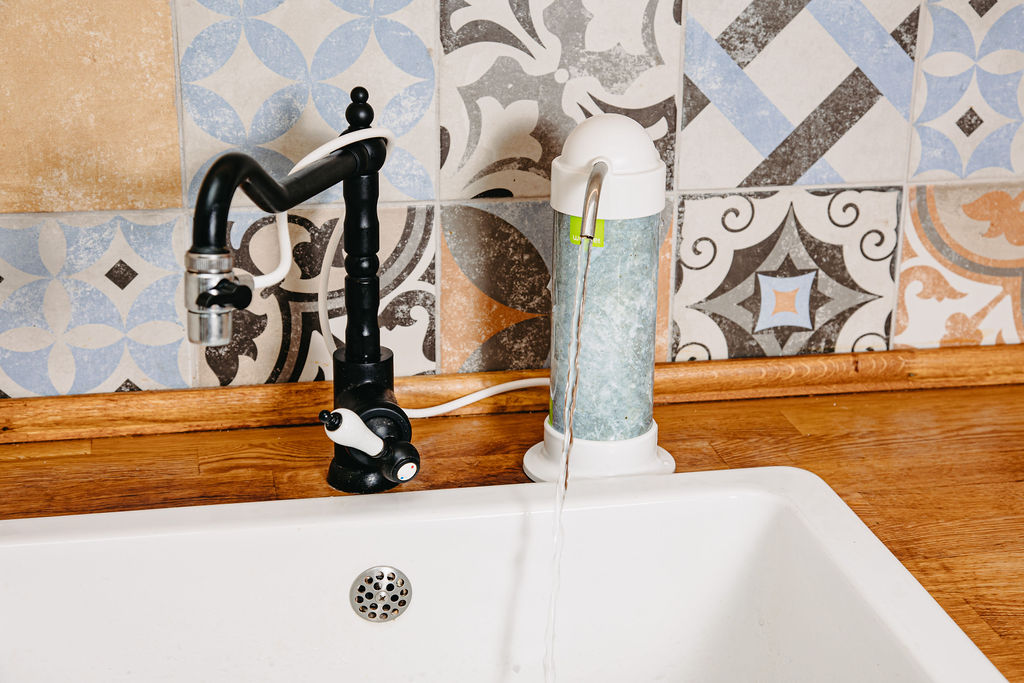 A készülék átfolyó rendszerű. A vízcsap végére egy útváltó szelep kerül, amihez egy műanyag csővel csatlakozik a víztisztító. Az útváltóval lehet a víz irányát váltani, hogy a mosogatóba folyjon a víz, vagy a készülékbe.